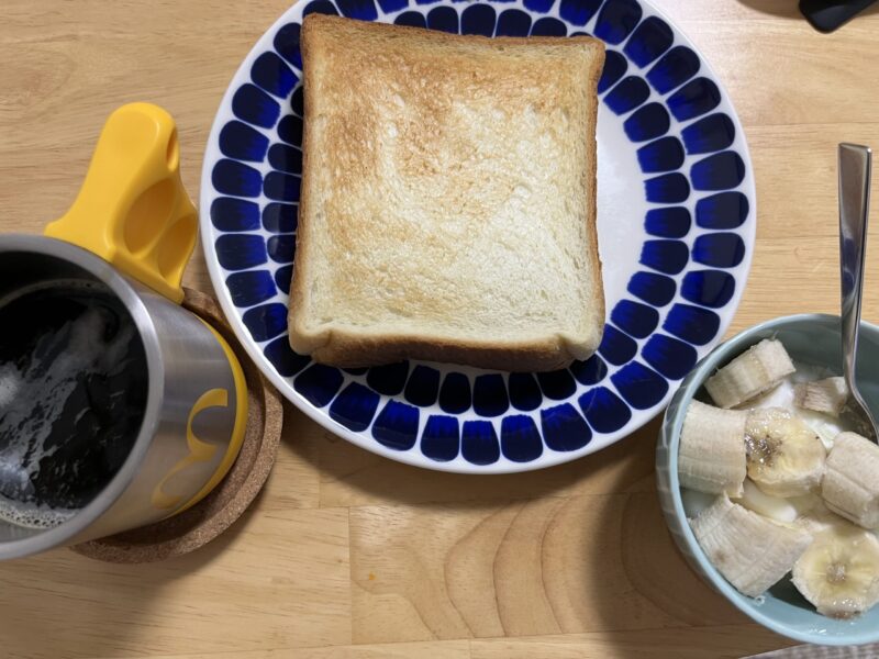 • 朝:代表メニュー(バタートースト+ヨーグルトとバナナ+オレンジ+コーヒー) …… 約380kcal