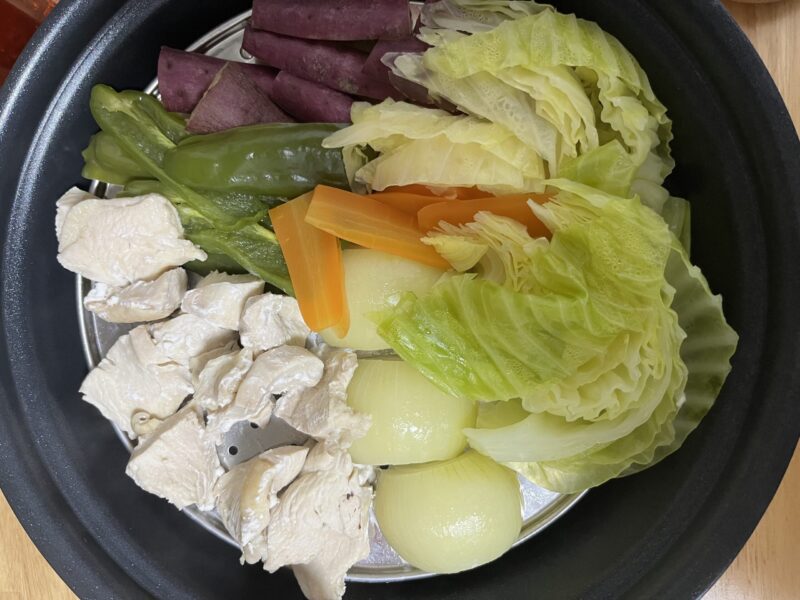 夜:鶏と野菜のせいろ蒸し(半分) …… 約380kcal
