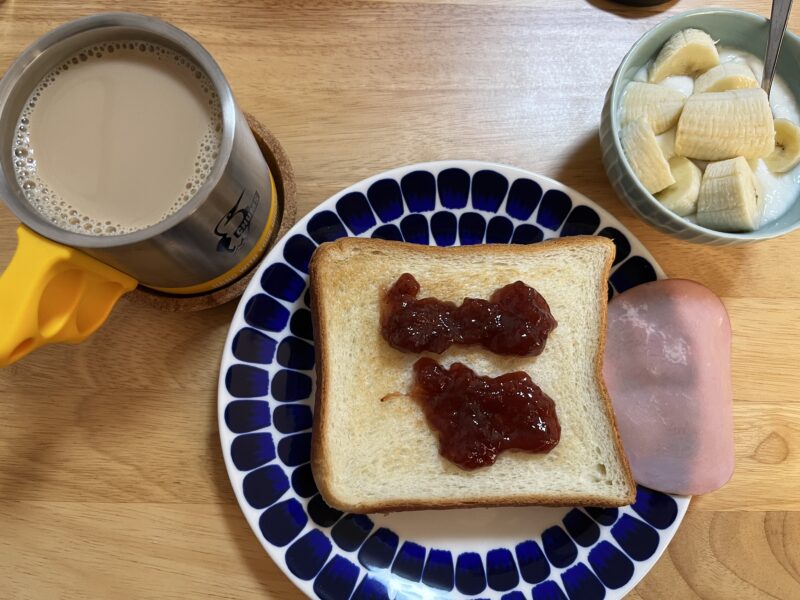 1. 朝食: 560 kcal(バナナジャムトースト他)