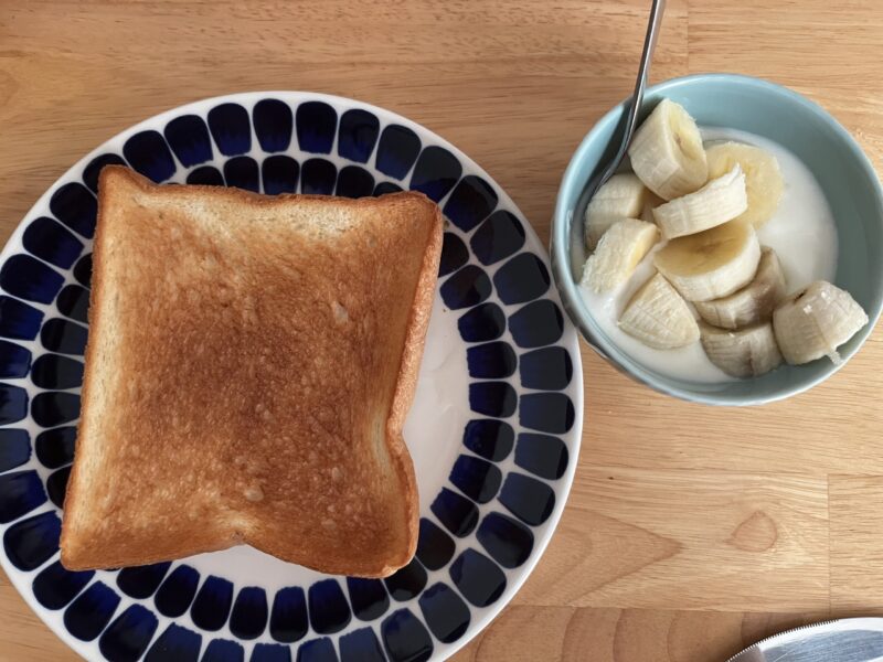 • 朝:代表メニュー(トーストとヨーグルト+バナナの朝食) …… 約290kcal
