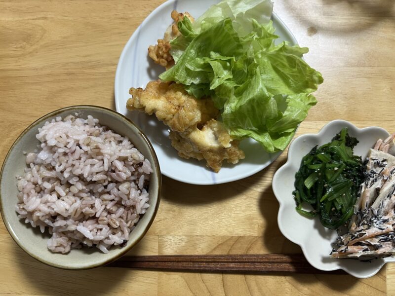 • 夜:代表メニュー(鶏から揚げ風フリッター定食) …… 約550kcal